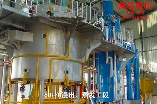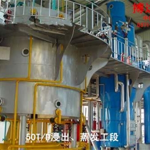 搏達浸出設(shè)備包括浸出系統(tǒng)、蒸脫系統(tǒng)、蒸發(fā)系統(tǒng)、冷凝系統(tǒng)和尾氣回收系統(tǒng)。主要的原理就是采用合適的溶劑將料胚中的油萃取出來,然后除去混合油中的溶劑。
